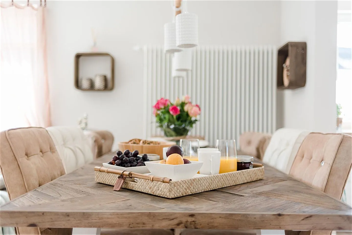 Voll ausgestattete Küche: Kochen Sie nach Herzenslust und genießen Sie gemeinsame Mahlzeiten am großen Esstisch.