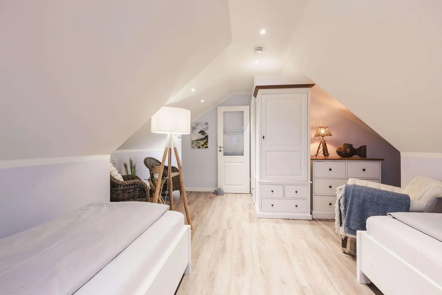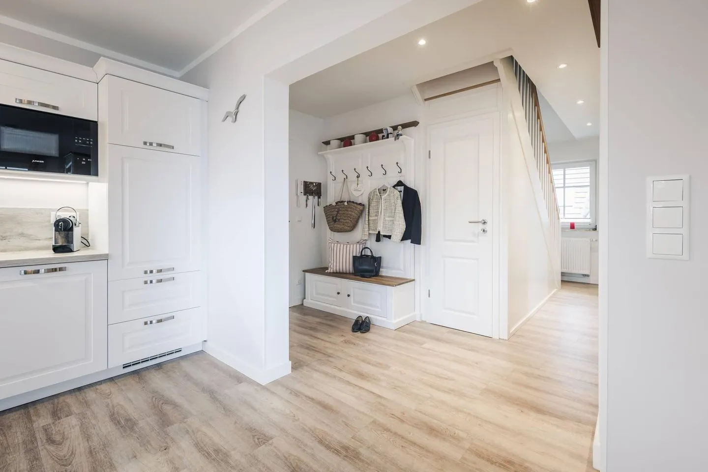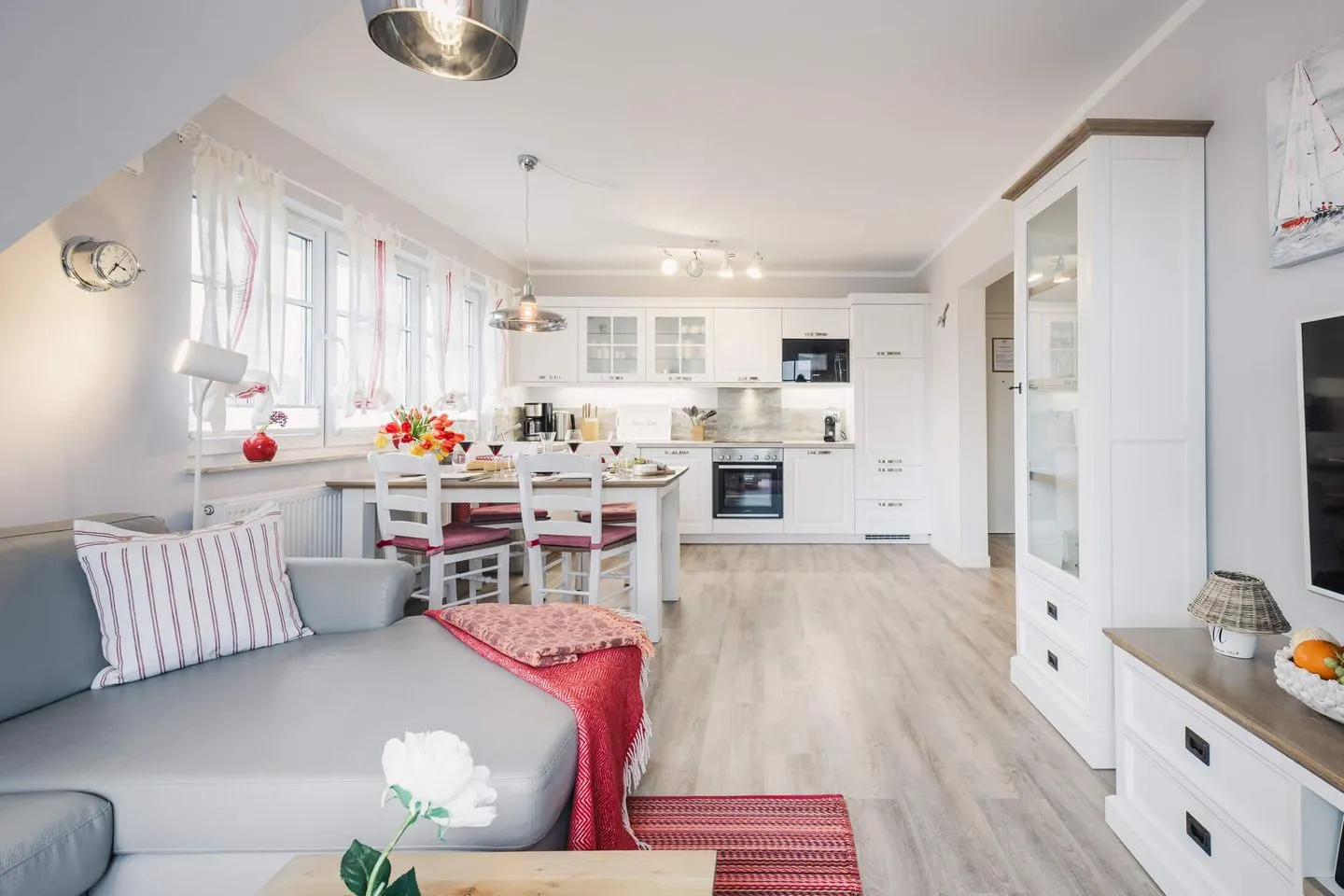 Verbringen Sie entspannte Tage in dieser neuen Maisonette-Ferienwohnung in Zingst in modernem, designorientiertem Ambiente. Auf dem Balkon können Sie gemütlich mit den ersten Sonnenstrahlen frühstücken und anschließend bequem mit dem Rad oder zu Fuß an den Strand und Ihren Urlaub in Zingst genießen. Durch die moderne und hochwertige Ausstattung kommen die hellen Räume richtig zur Geltung und sorgen für das besondere Wohlfühl-Urlaubsgefühl. Zum Appartement gehört ein PKW-Stellplatz sowie ein abschließbarer Fahrradschuppen.
