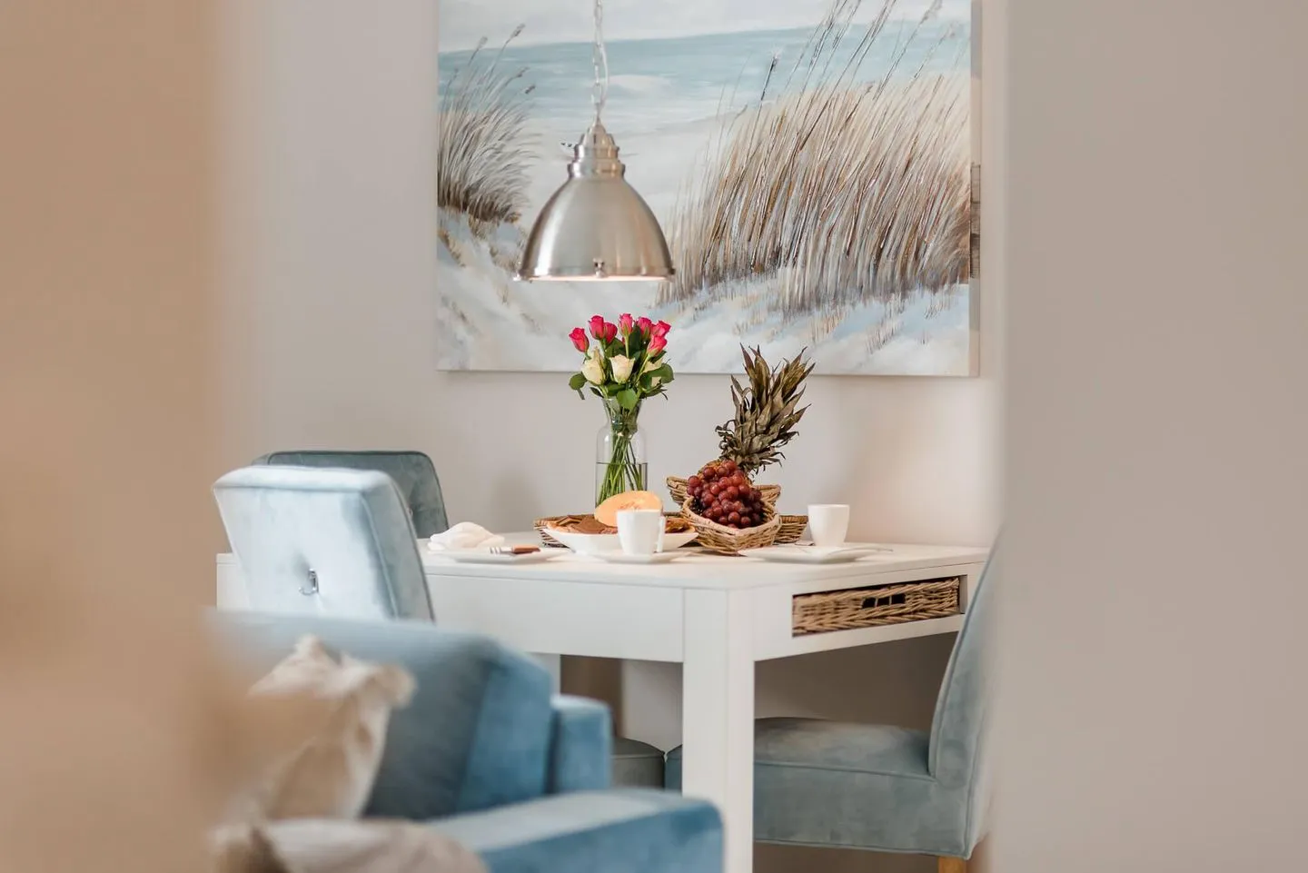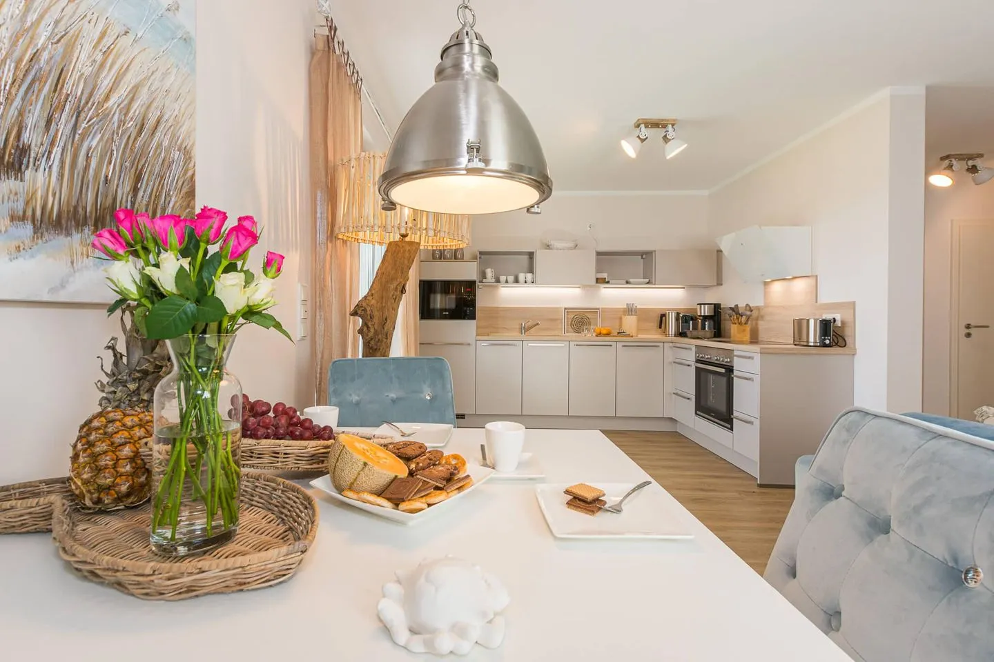 Geniessen Sie einen Aufenthalt in der gemütlichen und hochwertig ausgestatteten Ferienwohnung "Kleine Auszeit" in Zingst. Die Ferienwohnung besticht durch ihre moderne Einrichtung, welche durch das helle Mobiliar und die farblichen Akzente ein harmonisches Ambiente schafft.