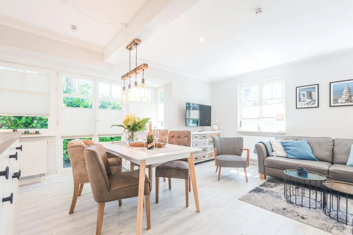 Das Highlight des Ferienhauses ist ein kleiner, abgeschlossener Garten mit einer schön möblierten Terrasse und einem Strandkorb. Die idyllische, abgeschirmte Lage lädt zum Verweilen ein. Hier können Sie die Sonne bis in den Abend hinein genießen.