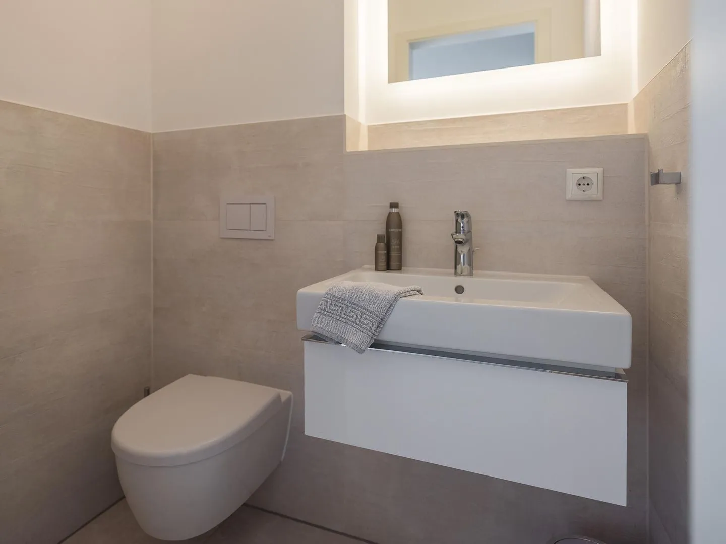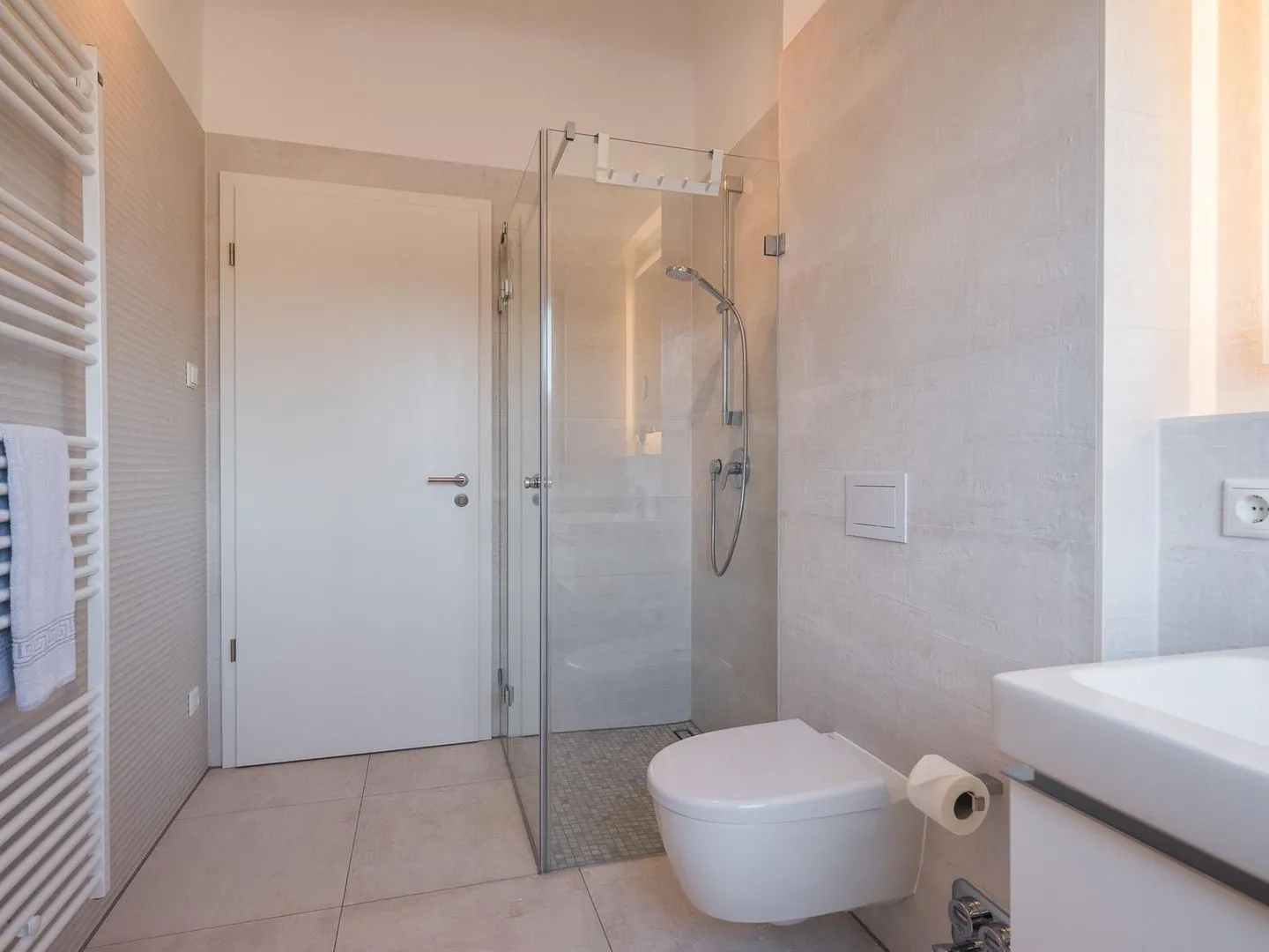 Das modern eingerichtete Badezimmer ist mit einer hochwertigen Dusche ausgestattet. Ein zweites kleines Badezimmer ist ebenfalls vorhanden.