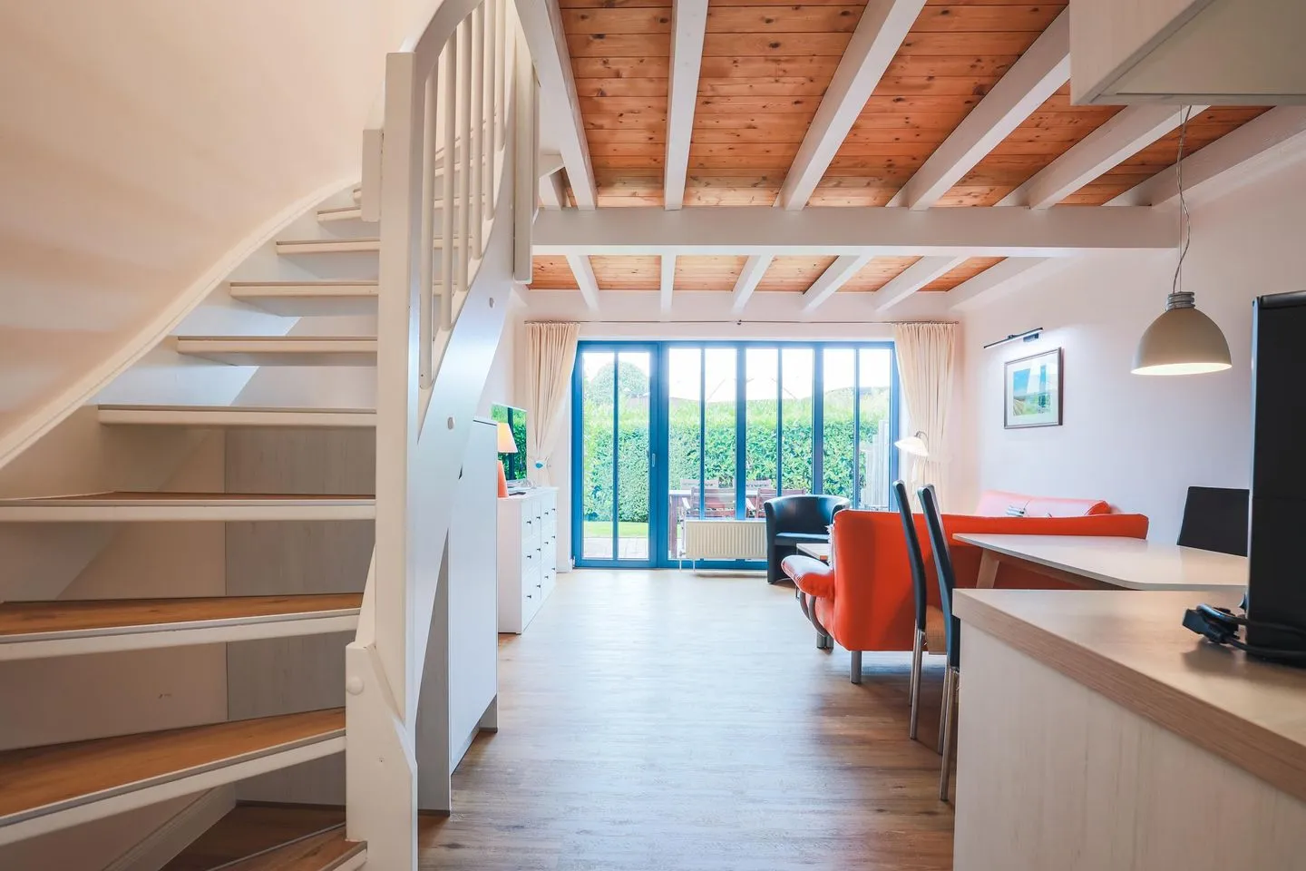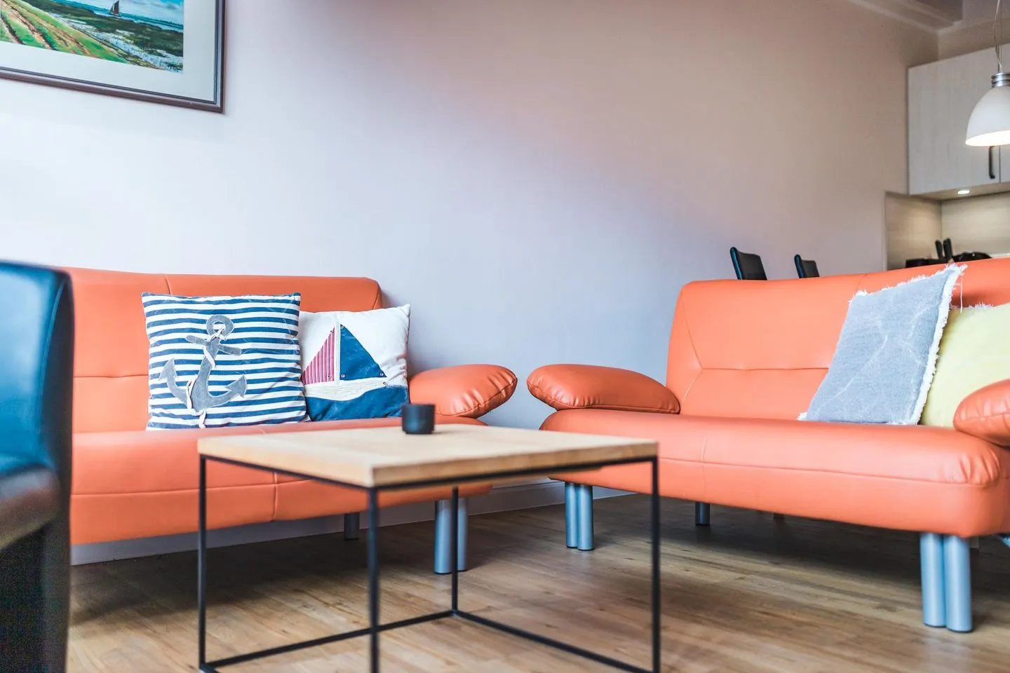 lichtdurchfluteter Wohnbereich mit einer offenen Küche und gemütlichem
