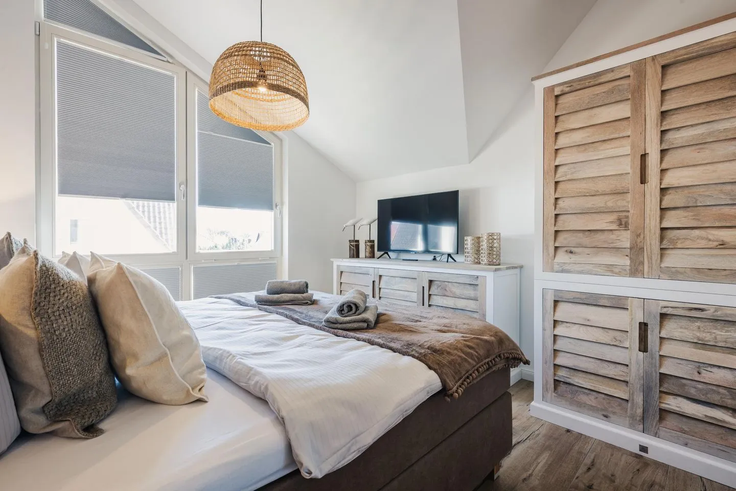 Die zwei gemütlichen Schlafzimmer, ausgestattet mit hochwertigen Boxspring-Betten (180x200 cm), hochwertigen Einbauten und Smart TV´s sorgen für einen erholsamen Schlaf.