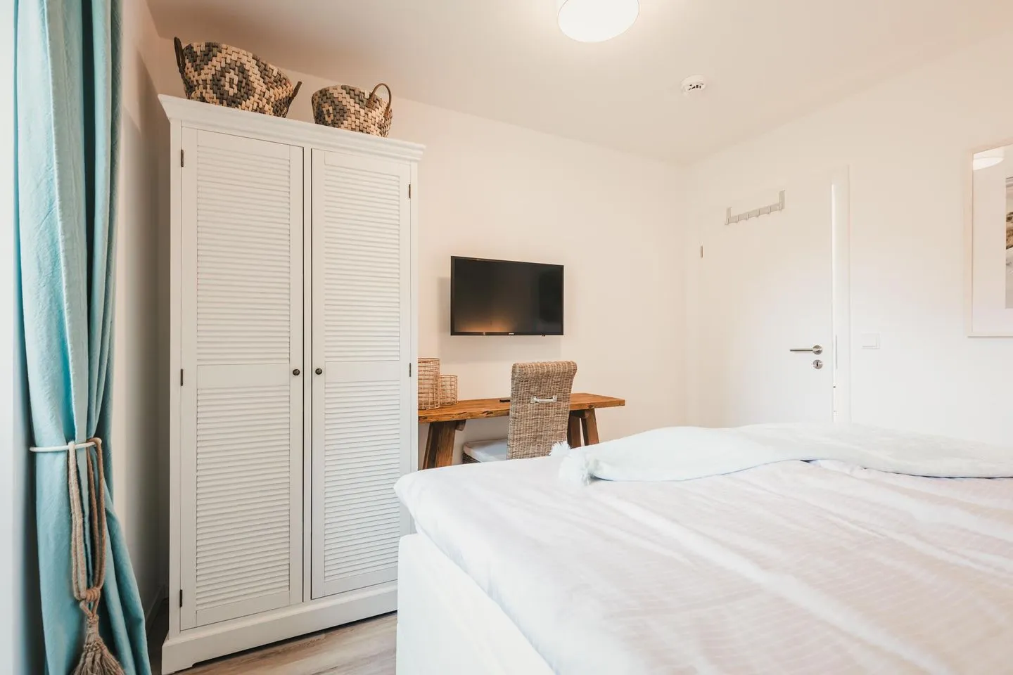 Zeit zum Verweilen, und ihren erholsamen Schlaf, finden Sie im Schlafzimmer gleich neben dem Badezimmer. Ein großes und sehr bequemes Boxspringbett verspricht ruhigen und erholsamen Schlaf. Für die ganz Kleinen gibt es ein ausklappbares Kinderreisebett mit Matratze.