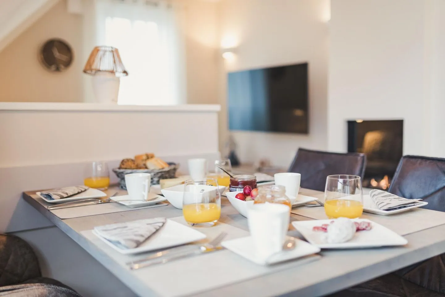 Die 56qm Wohnfläche verteilen sich auf zwei Etagen und bieten bis zu 4 Personen jeglichen Komfort für einen erholsamen Urlaub. Der großzügige, hochwertig eingerichtete Wohnbereich mit integrierter, moderner, voll ausgestatteter Küche und gemütlichem Essbereich lädt zum Wohlfühlen ein. Der lichtdurchflutete Wohnbereich verfügt zudem über einen Gaskamin und direktem Zugang zum sonnigen Balkon. Von hier aus können Sie spektakuläre Sonnenuntergänge mit einem Glas Wein genießen.