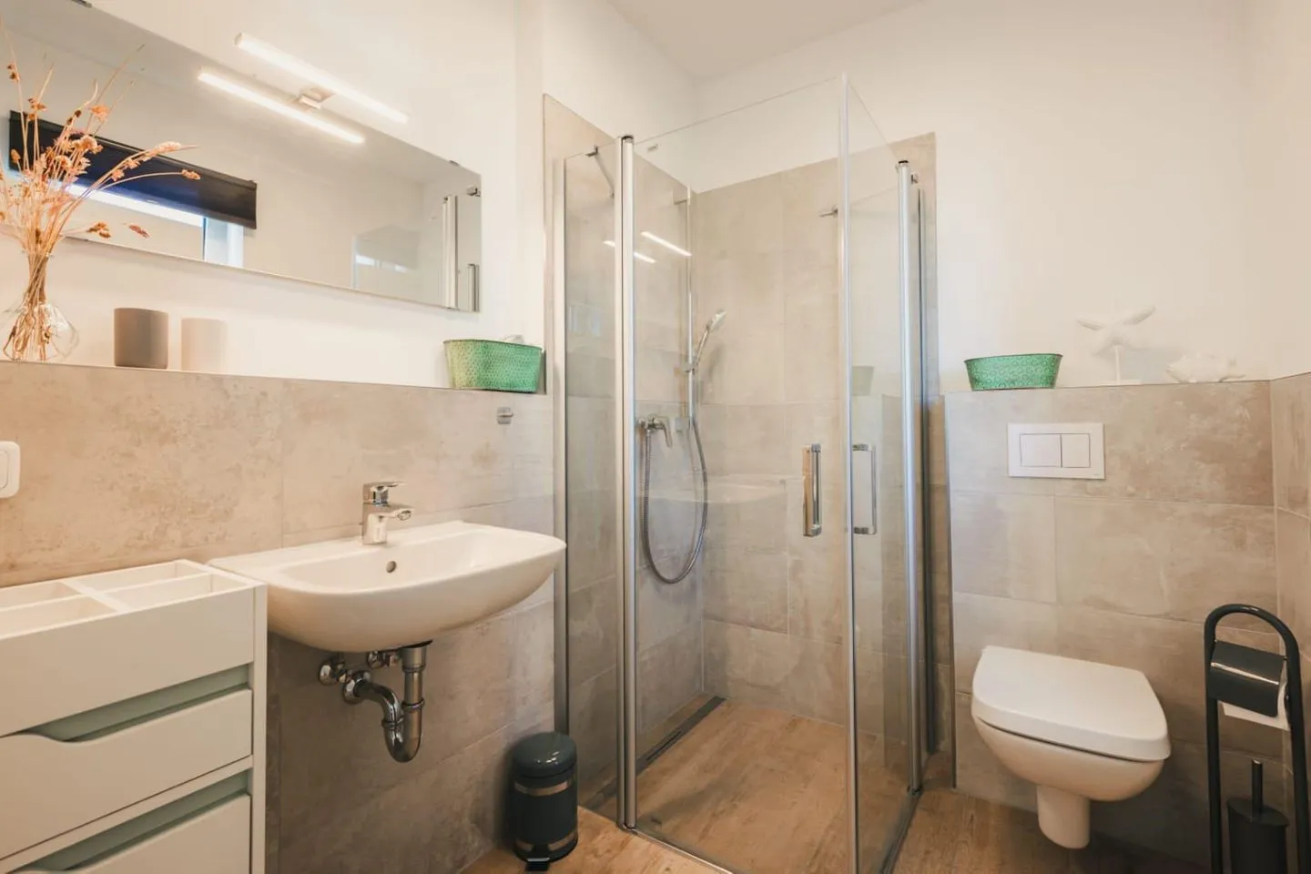 Im Erdgeschoss finden Sie außerdem noch ein zusätzliches Badezimmer mit Dusche sowie einen separaten Hauswirtschaftsraum inklusive Waschmaschine.