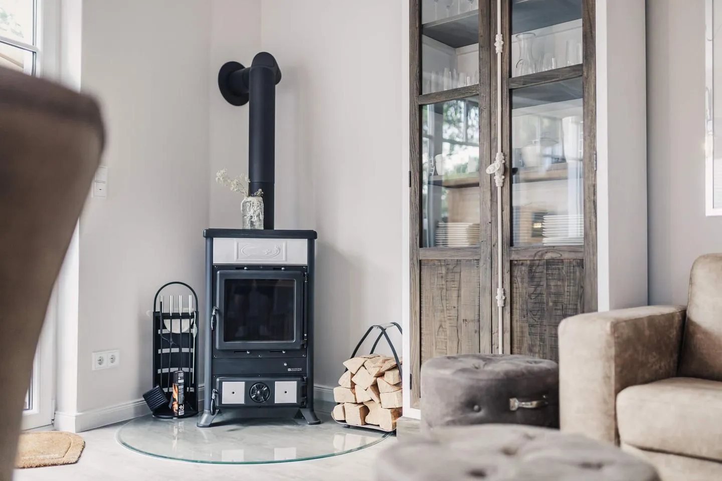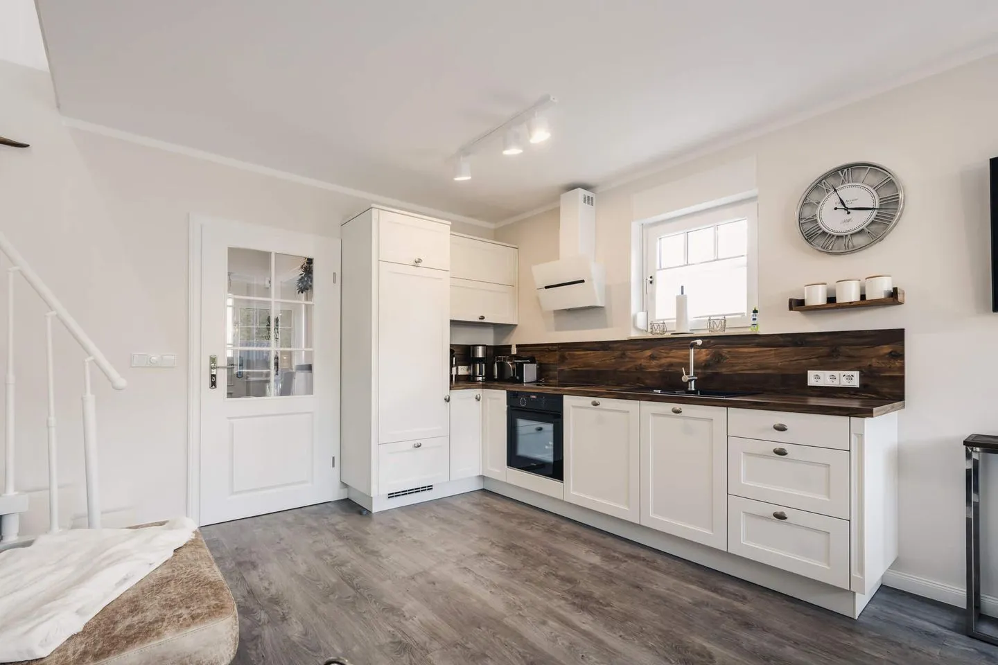 Im Erdgeschoss erwartet Sie ein kommunikativer und gemütlicher Wohn-Essbereich. Die hochwertige vollständig ausgestattete Landhausküche lässt keine Wünsche offen und eröffnet eine flexible Selbstversorgung. Am Abend sorgt ein Kamin für kuschelige Atmosphäre.