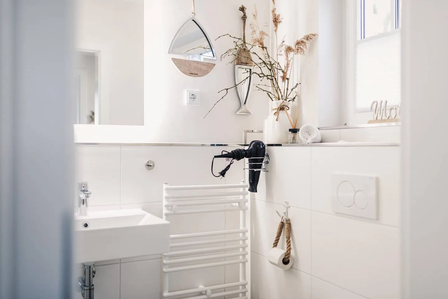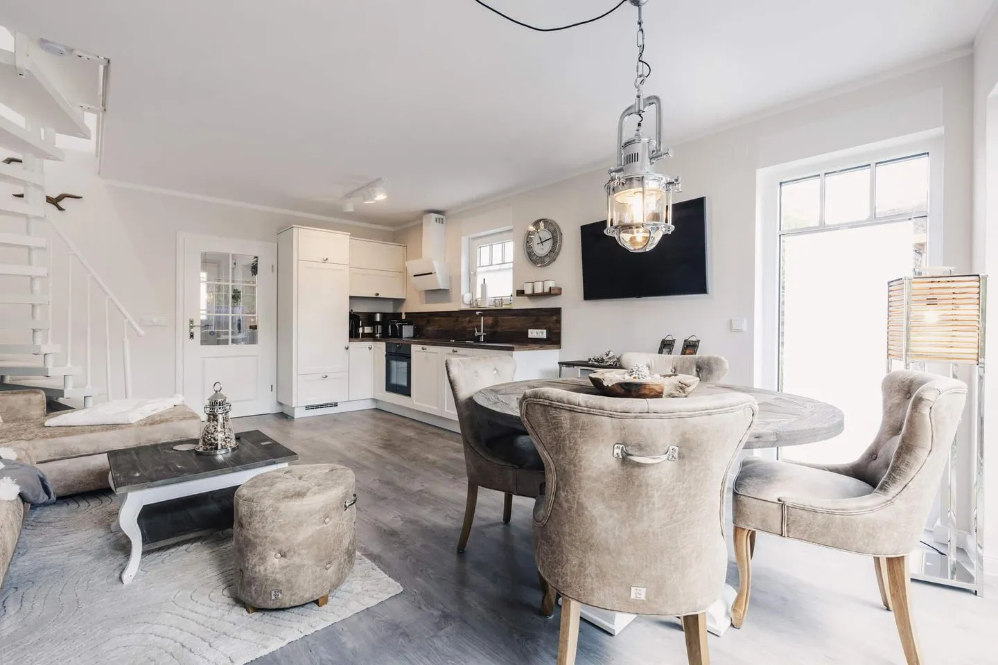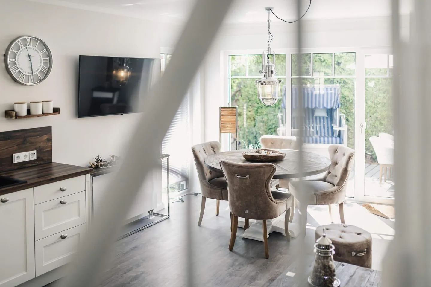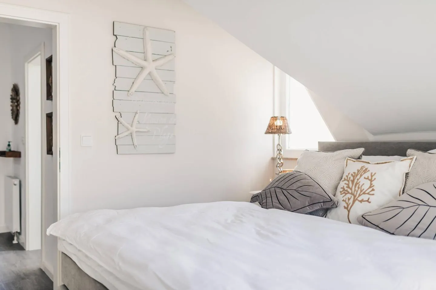 Das gesamte Haus Meerschönheit wurde liebevoll und hochwertig im Beachhouse-Stil von Riviera Maison eingerichtet. Helle Sandtöne, edles Holz und maritimer Flair lassen die lichtdurchfluteten Räume zu einem harmonischen Wohlfühlort werden.