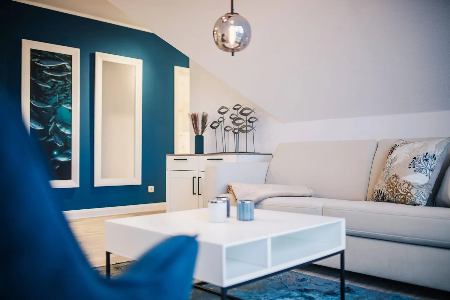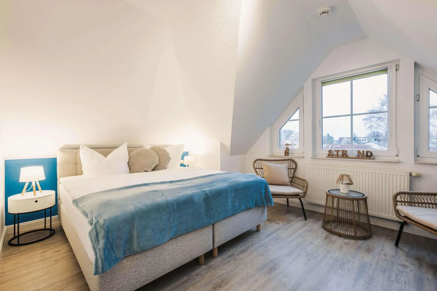 Familienfreundlich: Die Ferienwohnung Luv ist ideal für einen Ostseeurlaub mit Kindern geeignet. Das Schlafzimmer mit Boxspringbett bietet Platz für zwei Personen und im Wohnzimmer befindet sich ein Schlafsofa für weitere zwei Personen. Ein Kinderreisebett mit Matratze steht zur Verfügung.