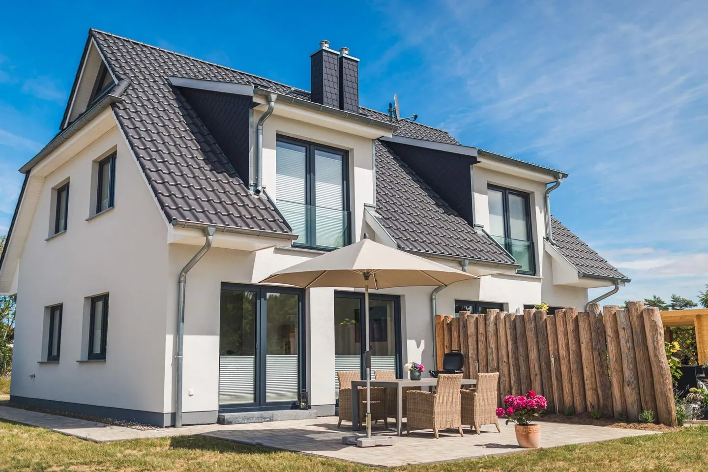 Die Terrasse bietet Ihnen von morgens bis abends Sonne. Die hochwertigen Gartenmöbel und der Sonnenschirm geben Ihnen die Möglichkeit, das Leben draußen zu genießen.