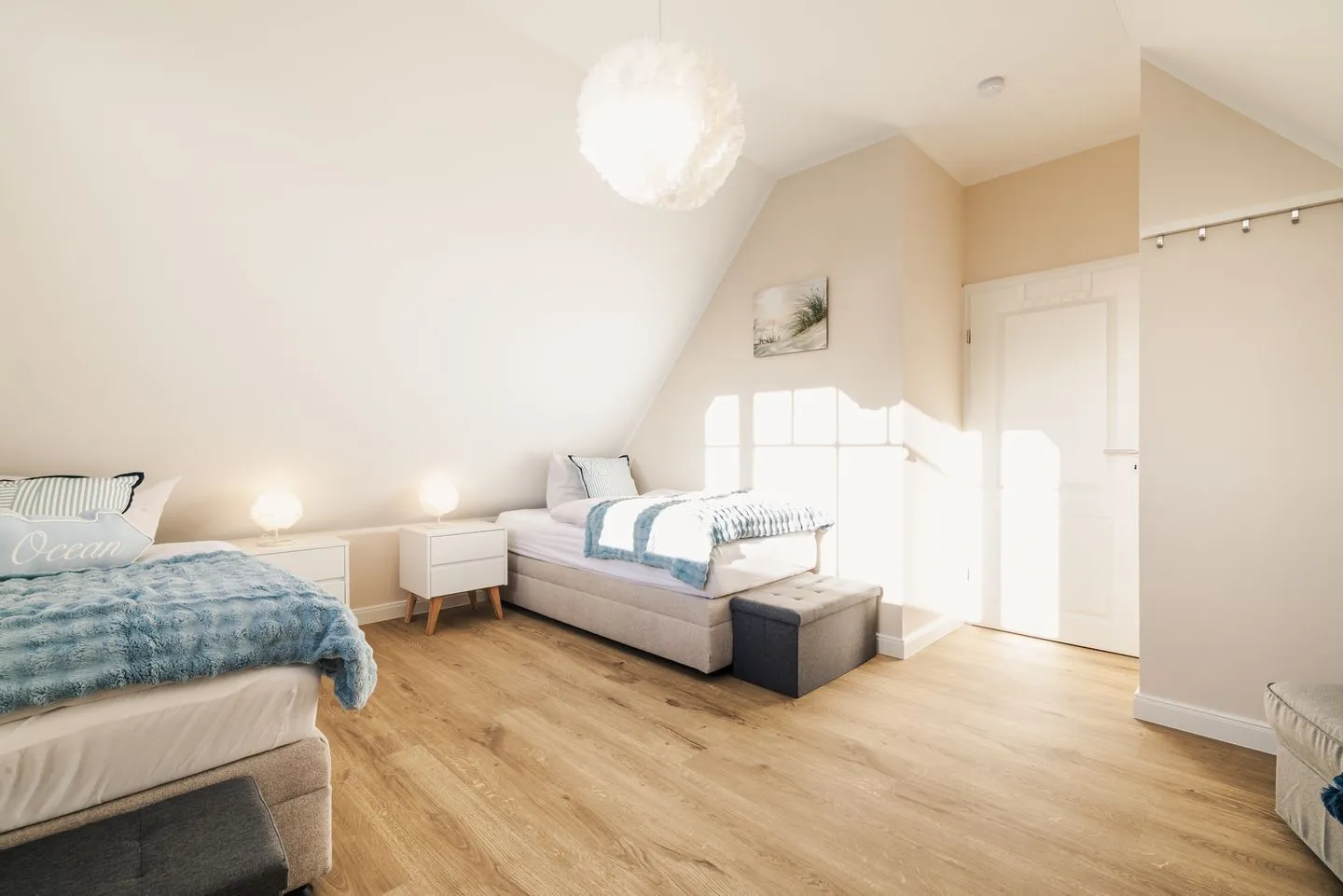 - 2 Einzelbetten - Boxspringbett - erhöhte Betten - Betten mit offenem Fußende
