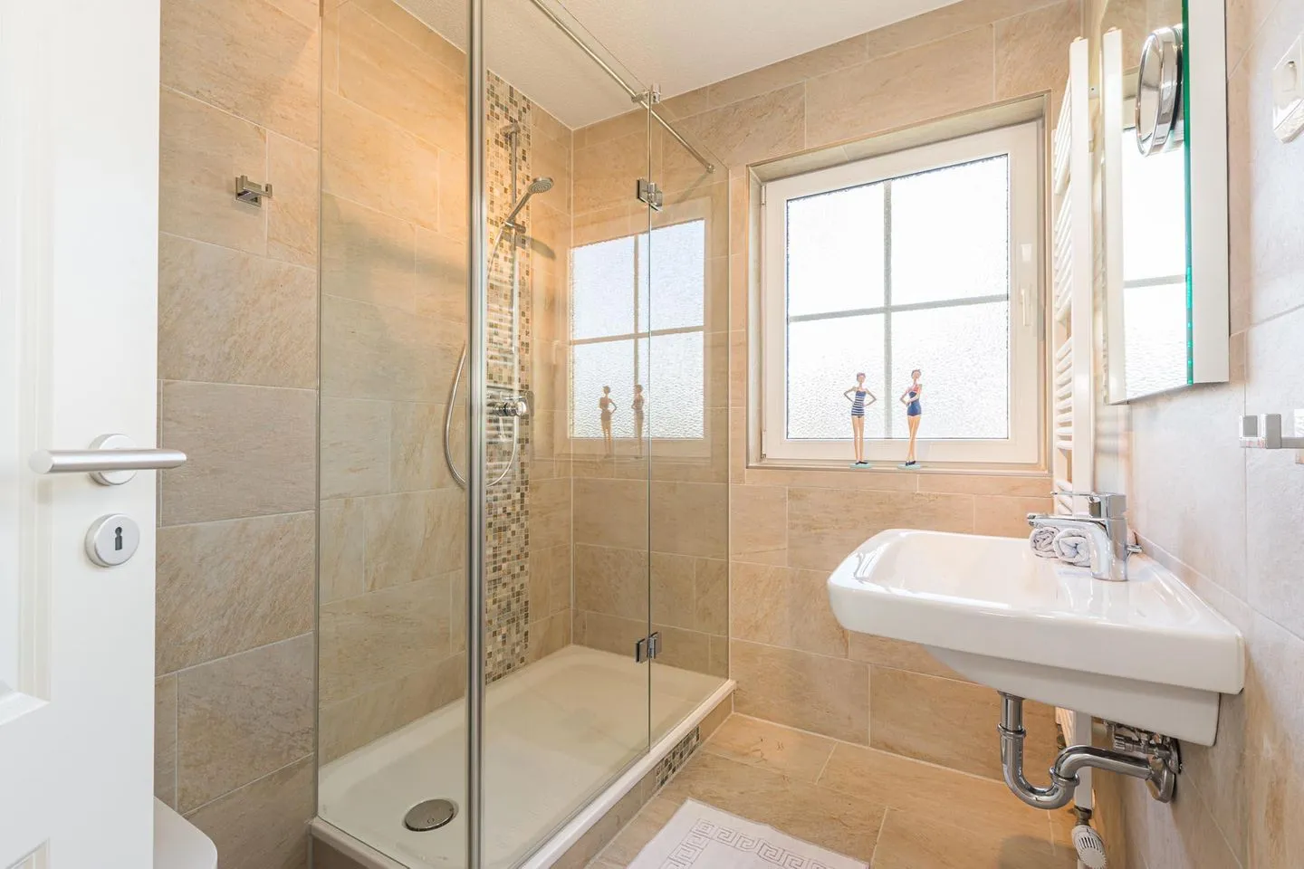 Die Doppelhaushälfte verfügt über zwei modern und hochwertig eingerichtete Badezimmer. Im Erdgeschoss befindet sich ein Duschbad.
