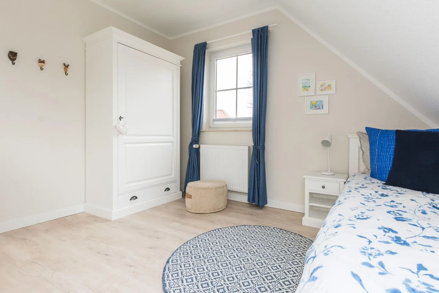 Die beiden Schlafzimmer befinden sich im Obergeschoss welches Sie durch eine Wendeltreppe erreichen. Eines der Schlafzimmer verfügt über ein großes bequemes Doppelbett.Das andere Schlafzimmer ist mit zwei komfortablen Einzelbetten ausgestattet, welche traumhaften erholsamen Schlaf garantieren.
