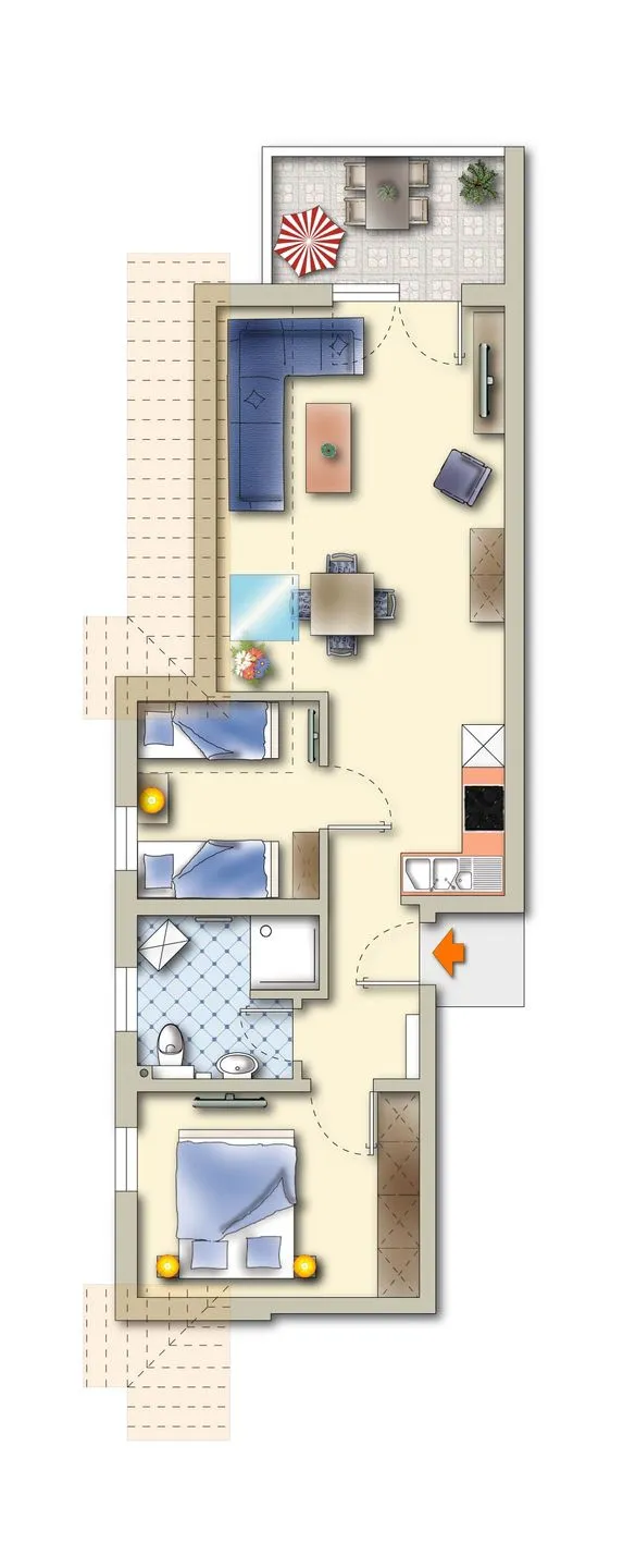 Diese schöne Unterkunft bietet sich als großzügige Urlaubsbleibe zu zweit an, mit der Möglichkeit Besuch zu empfangen. Ohne Weiteres ist in der auch für Familien (mit maximal 2 Kinder) optimal geschnittenen Wohnung ein toller Urlaub erlebbar. Die Wohnung ist für maximal 4 Personen zugelassen. Eine Aufbettung ist nicht möglich/erlaubt.