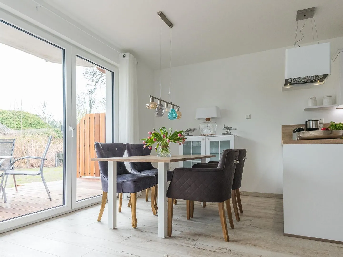 Am Morgen lädt die große Terrasse mit Vorgarten zum Frühstücken ein.