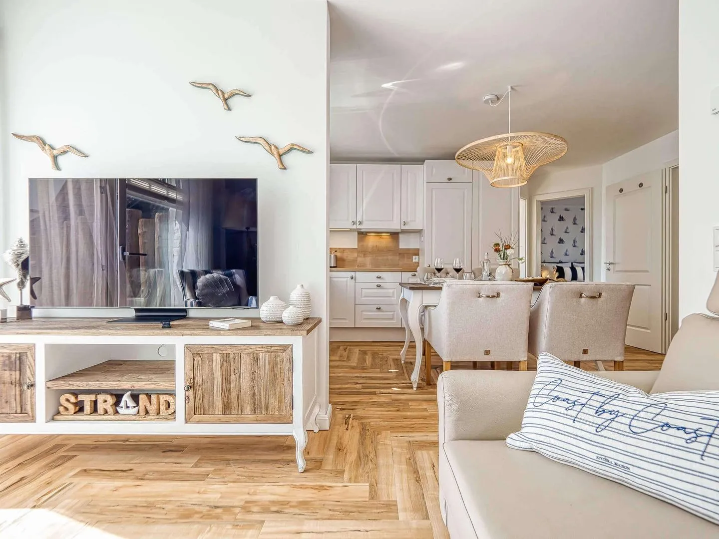 Mit wenigen Schritten erreichen Sie den Ostseestrand mit der Seebrücke sowie die Zingster Flanier- und Einkaufsmeile. Im Eingangsbereich erwartet Sie ein heller, gemütlicher Wohn- / Essbereich, ausgestattet mit WLAN, Smart TV, sowie ein direkter Zugang zur Terrasse in Süd-Westausrichtung mit Gartenmöbeln und einem zur Wohnung gehörenden Garten. Hier können Sie den Verlauf der Sonne ganztägig in einer von Deutschlands „Sonnenreichsten Regionen“ genießen.