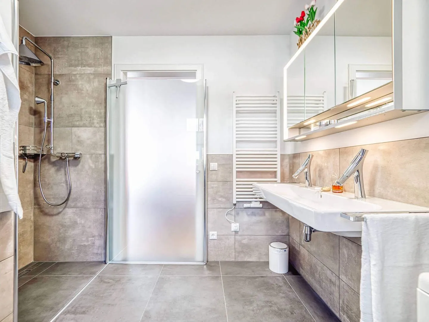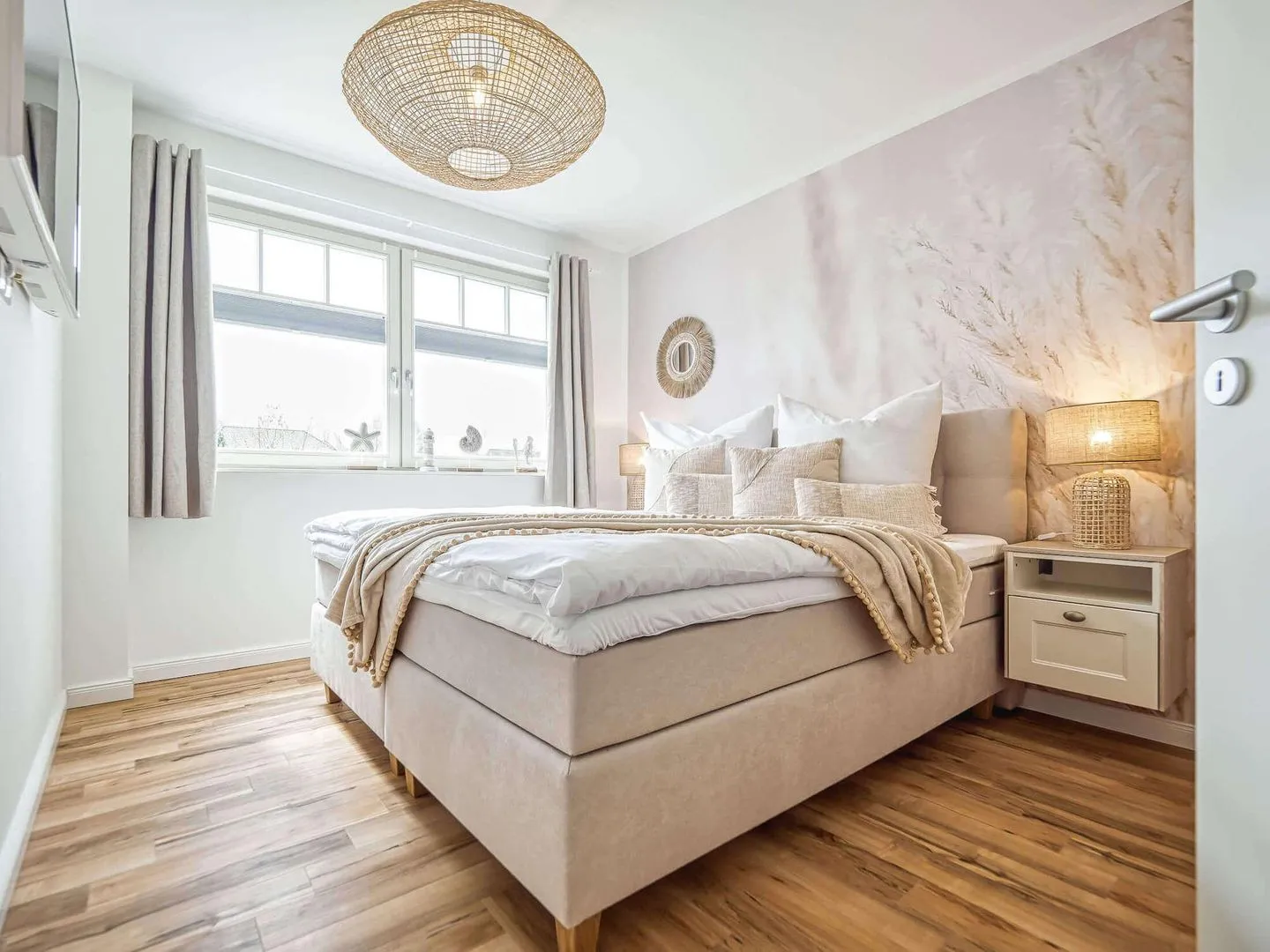 Die Wohnung bietet zwei Schlafräume, beide Schlafräume sind jeweils mit hochwertigen Bockspringbetten (180 x 200 cm) und Kleiderschrank, sowie Smart TV`s ausgestattet. In dem großzügigen Badezimmer befindet sich eine hochwertige, bodentiefe Dusche, sowie ein Doppelwaschtisch mit WC und Waschtrockner. Ein Baby- und Kleinkindreisebett, sowie ein Hochstuhl steht Ihnen bei Bedarf ebenfalls kostenfrei zur Verfügung.