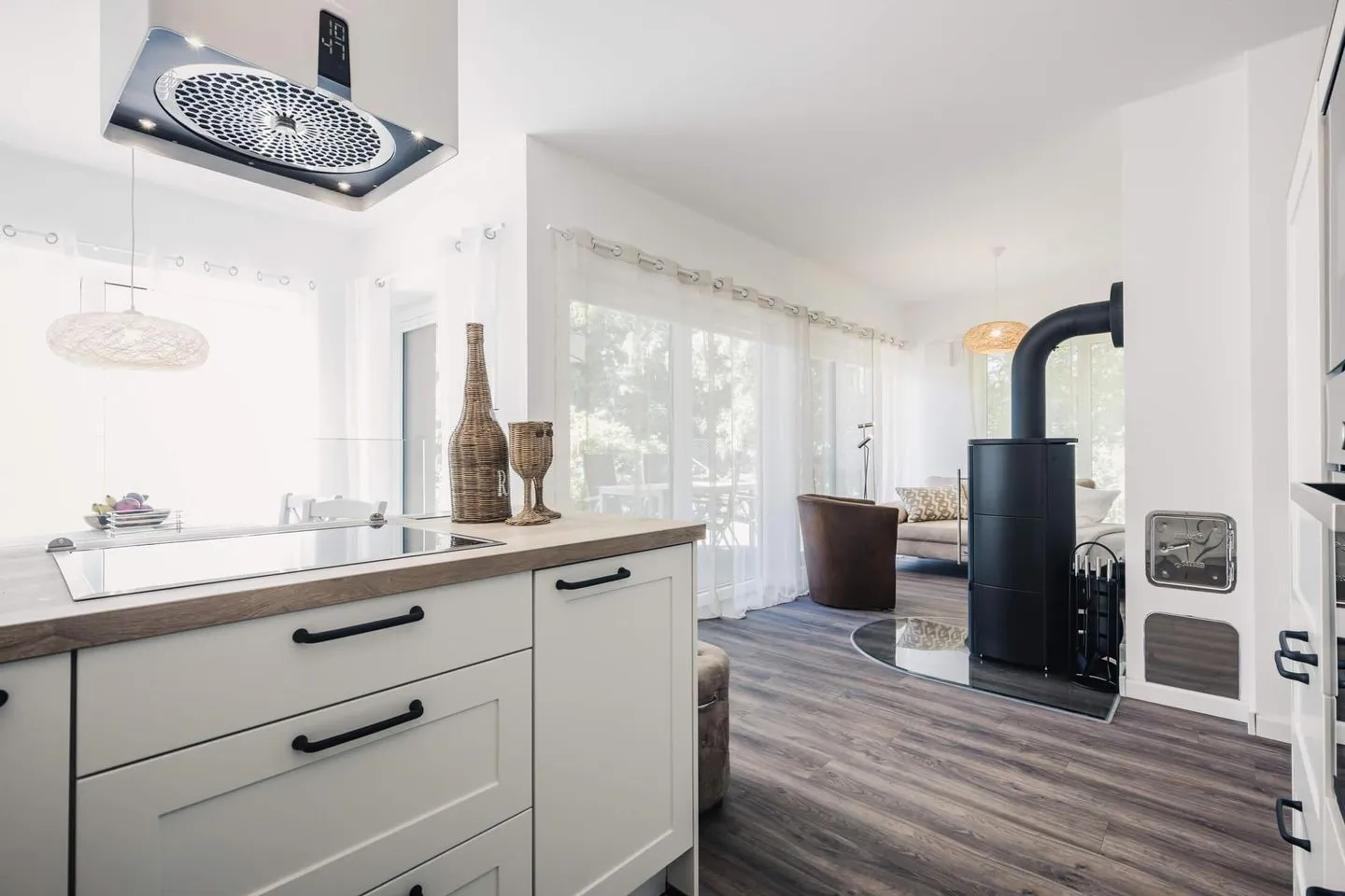 Die große Küche bietet Ihnen und Ihrer Familie viel Platz zum Kochen. So können auch ambitionierte Hobbyköche ihrer Leidenschaft im Urlaub nachgehen. Die offene Küche ist komfortabel eingerichtet, mit Ceranfeld, Geschirrspüler, Kühlschrank mit Gefrierfach, Wasserkocher, Mikrowelle u.v.m.