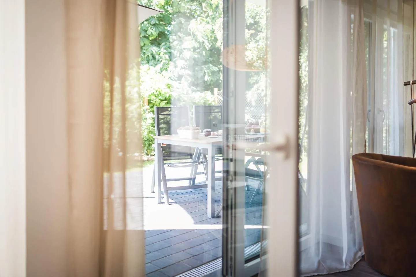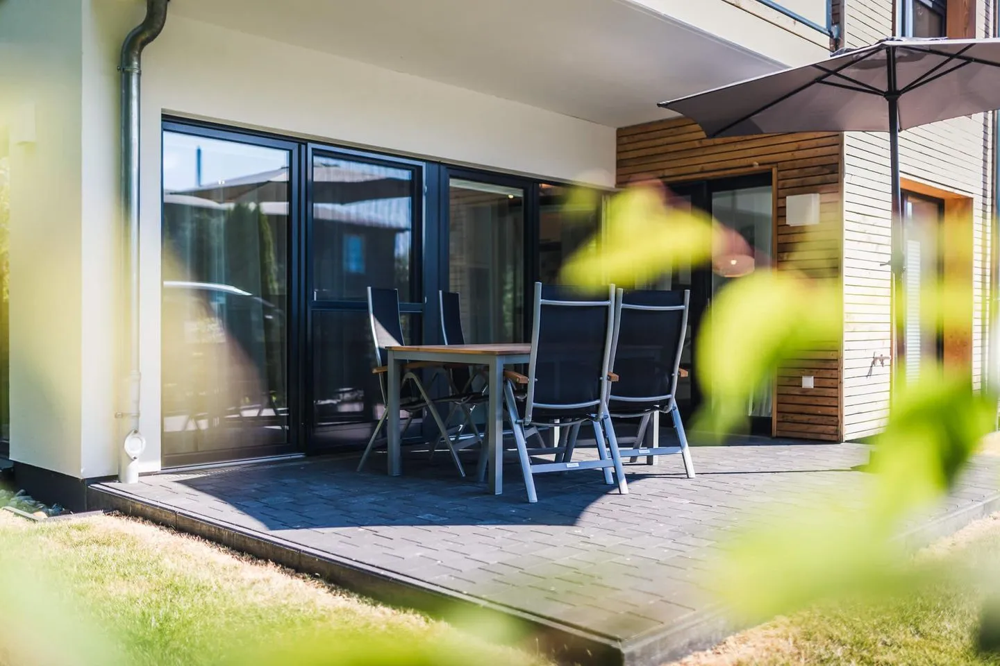 Auf der sonnigen Süd-Terrasse können Sie auf bequemen Gartenmöbeln den Tag ausklingen lassen oder sich das Frühstück schmecken lassen.