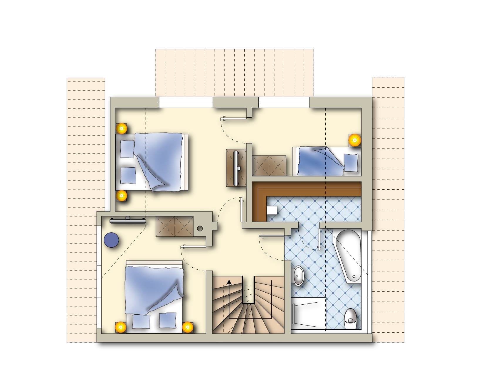 In Zingst wohnen Sie in einer Doppelhaushälfte über drei Etagen. 3,5 Schlafzimmer, 2 Zimmer sind mit einem Doppel-Boxspringbett und 2 mit Einzelbetten ausgestattet. Insgesamt finden hier 7 Personen ihren Platz. Das Ferienhaus Hus Zeeskahn hat 2 hochwertige Bäder, eines davon hat neben der bodengleichen Dusche, eine Badewanne und auch eine eigene Sauna.