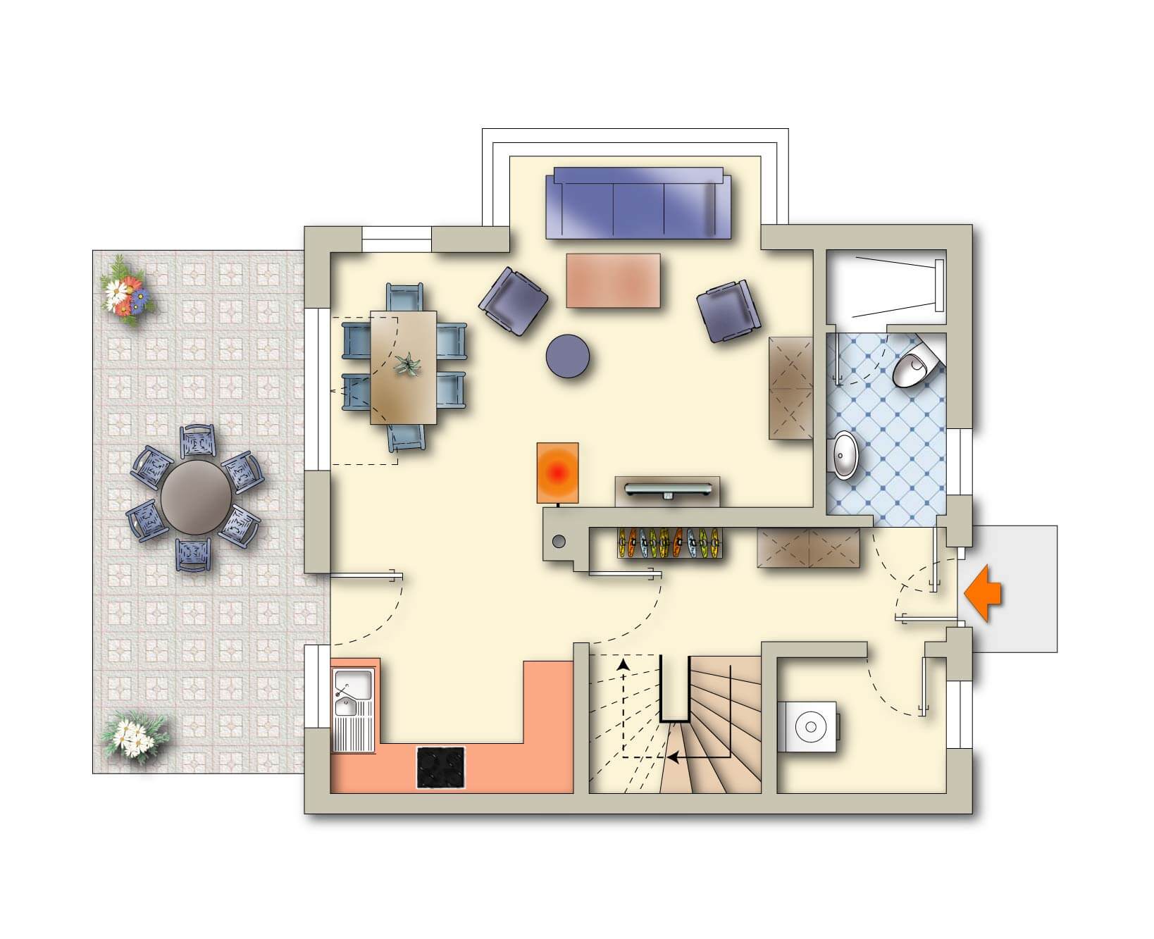 Zudem verfügt das Ferienhaus über einen großzügigen Wohnraum mit exklusiver Kücheneinrichtung, die keine Wünsche offen lässt. Die nach Süd-West ausgerichtete möblierte Terrasse gibt Ihnen die Möglichkeit, noch am Abend die Sonne zu genießen und den Tag ausklingen zu lassen. Der Kaminofen sorgt an kühleren Tagen für eine wohlige Wärme im Haus.